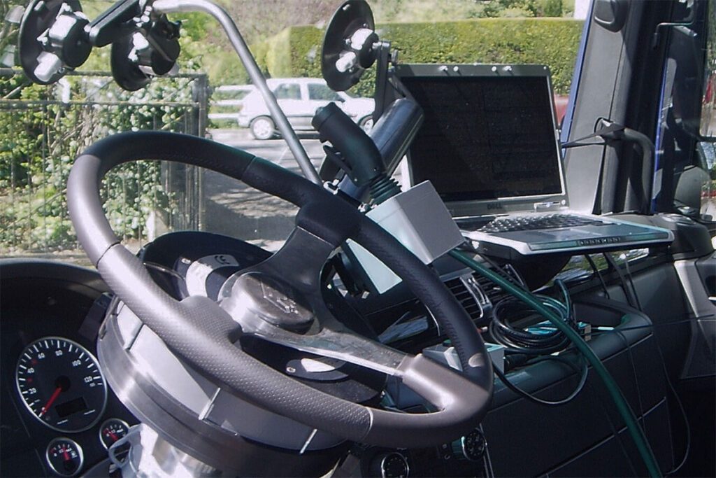 SR 150 là robot lái mô-men cực lớn cho xe tải và xe buýt, phù hợp power-steering failure, UNECE R79 và các bài thử handling nặng.